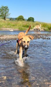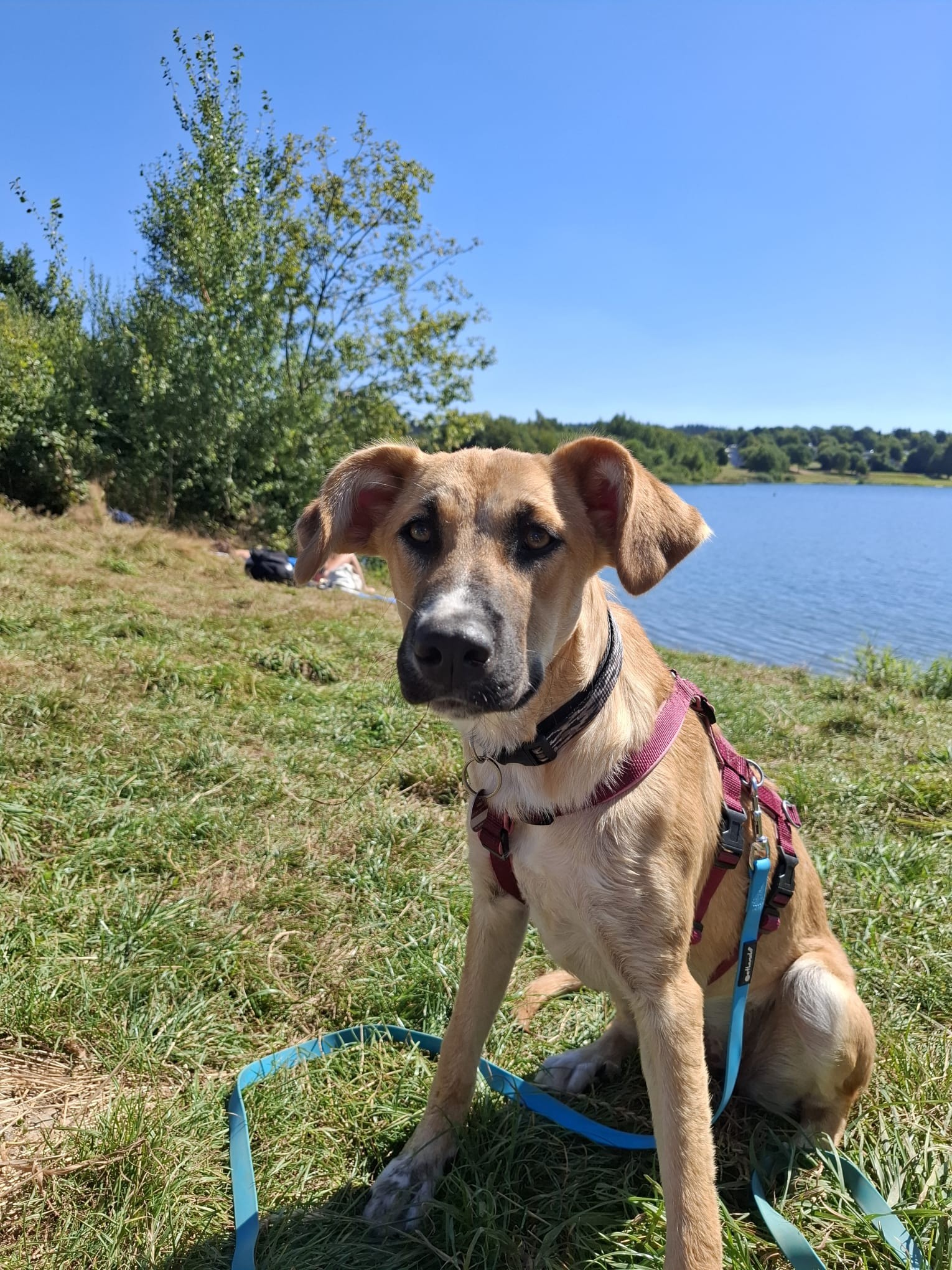 Kenia fue adoptada en Alemania. Juegan mucho con ella y le encanta jugar al fútbol.